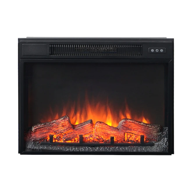 This electric wall fireplace by Style Selections will bring supplementary heat to your home as well as a cozy feel. It offers a maximum 1500 W heat level and heats up an area of up to 400 sq. ft. It is equipped with a fully functional and intuitive remote control. This black stove has an adjustable 5-brightness flame and a Green Tech LED light source with a long lifespan and excellent energy savings. Backed by a 1-year limited warranty.