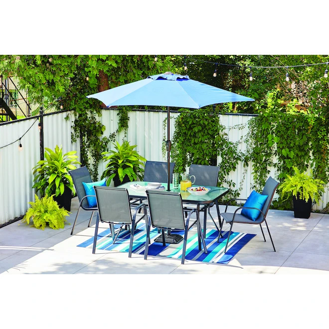 Looking for the perfect outdoor dining table? Take a look at this Pelham Bay patio table from Style Selections! This beautiful rectangular model features a heavy-duty steel frame with a black powder-coated finish, as well as an easy-to-clean tempered glass tabletop. Perfect for entertaining, it can sit up to 6 people. Plus, it’s easy to assemble and backed by a 1-year limited warranty. Pair this outdoor table with Pelham Bay dining chairs for a patio set you’ll be enjoying for years to come!